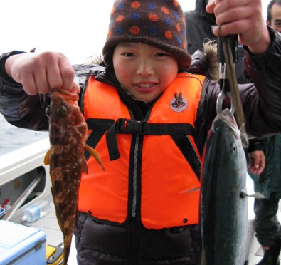 オマケに、誰も教えてないのに、根魚(アコウ)まで釣ってました・・・大人顔負け(+_+)