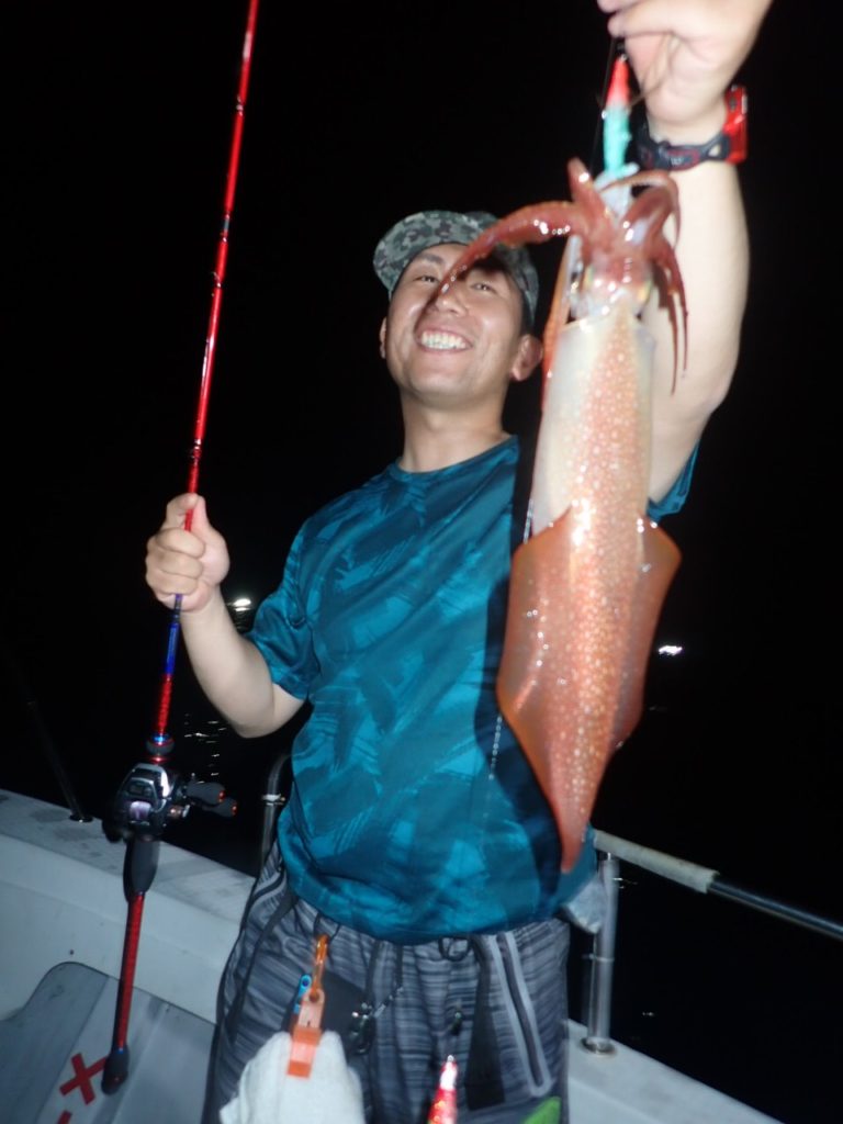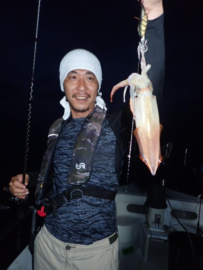 今日は、明るい内から釣れ出し、ライトを点けてからは、50m➡︎40mと順調にタナが浅くなってきたのですが、その後、タナが50m〜15mとバラバラになってしまいました・・・?