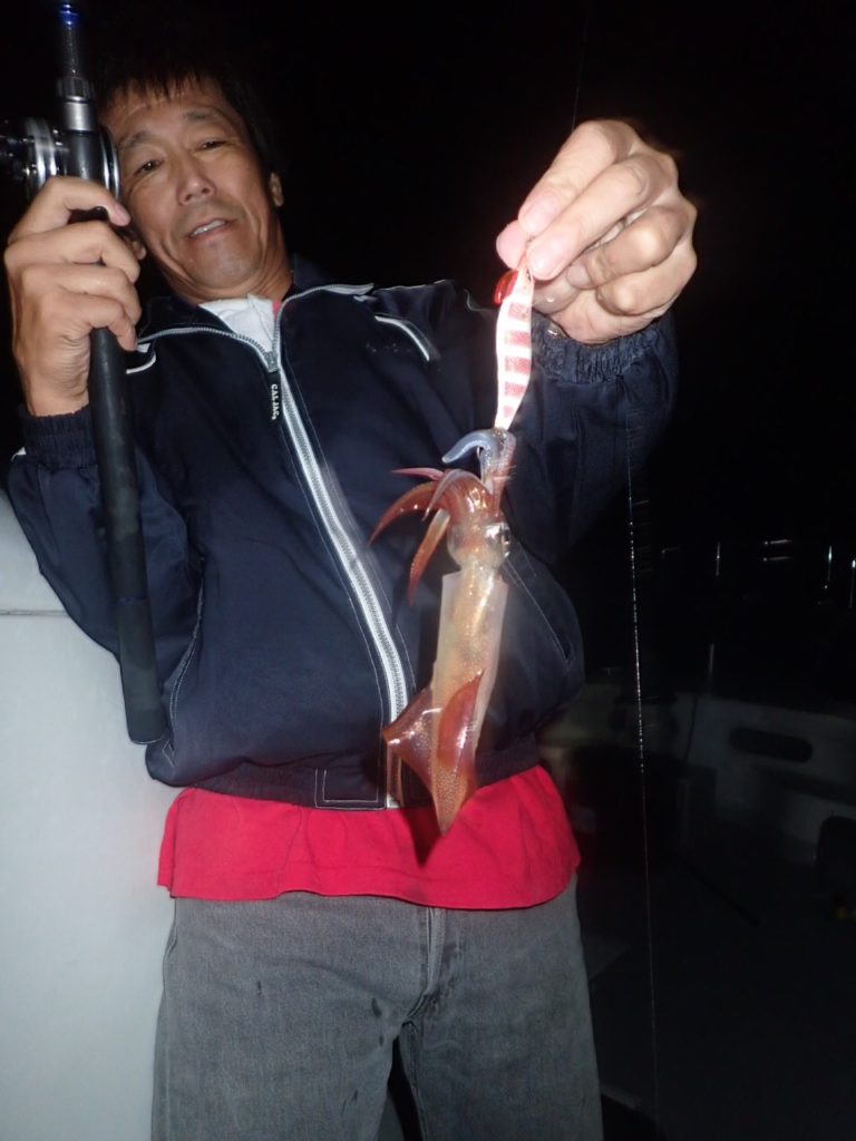 竿以外、全部車に忘れて来て、借り物の仕掛けやエギで、