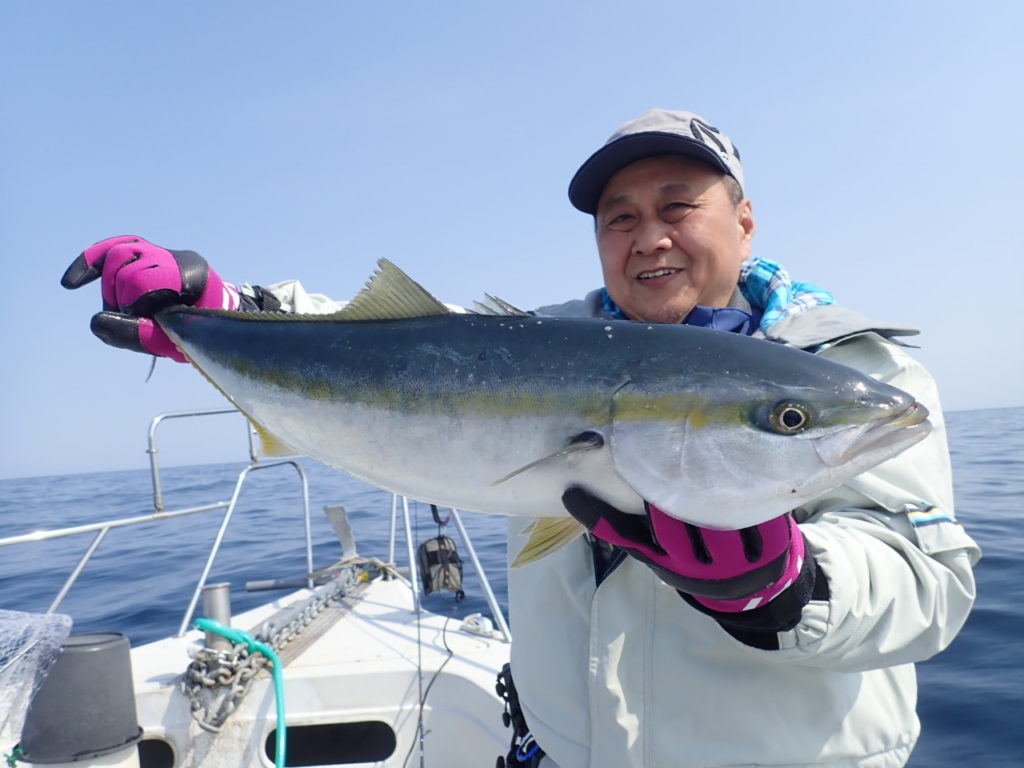 最初の青物は高活性で、メーターオーバー12kgを筆頭に、メタボな9kgのブリ・メジロが釣れ、