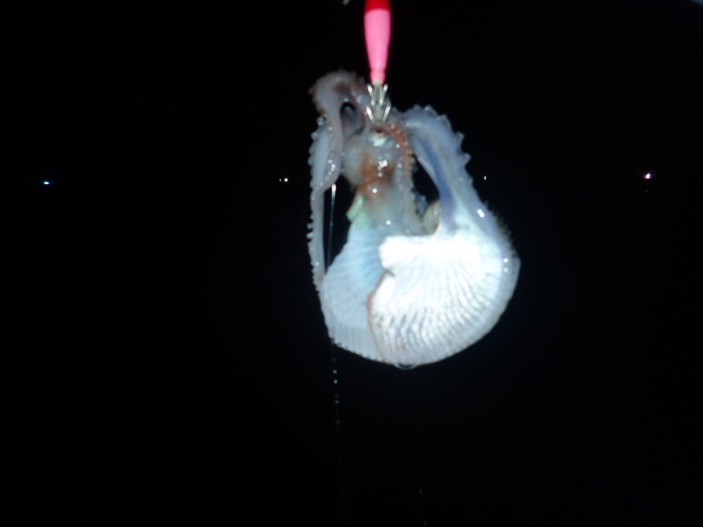 前半2〜3名同時ヒットやダブルヒットなど・・誰かのロッドが曲がっていて・・好調かな?と思っていたら・・中盤・・天敵でも現れたのか・・貝殻を背負ったタコ・・アオイガイが釣れた辺りで・・ピタと止まり・・その後・・ポツポツとヒットするも・・タナも・・ドンドン深くなっていく・・「なんでやねん」という1日でした・・?