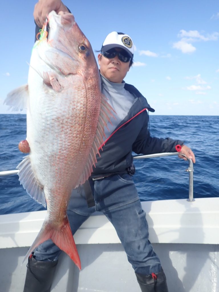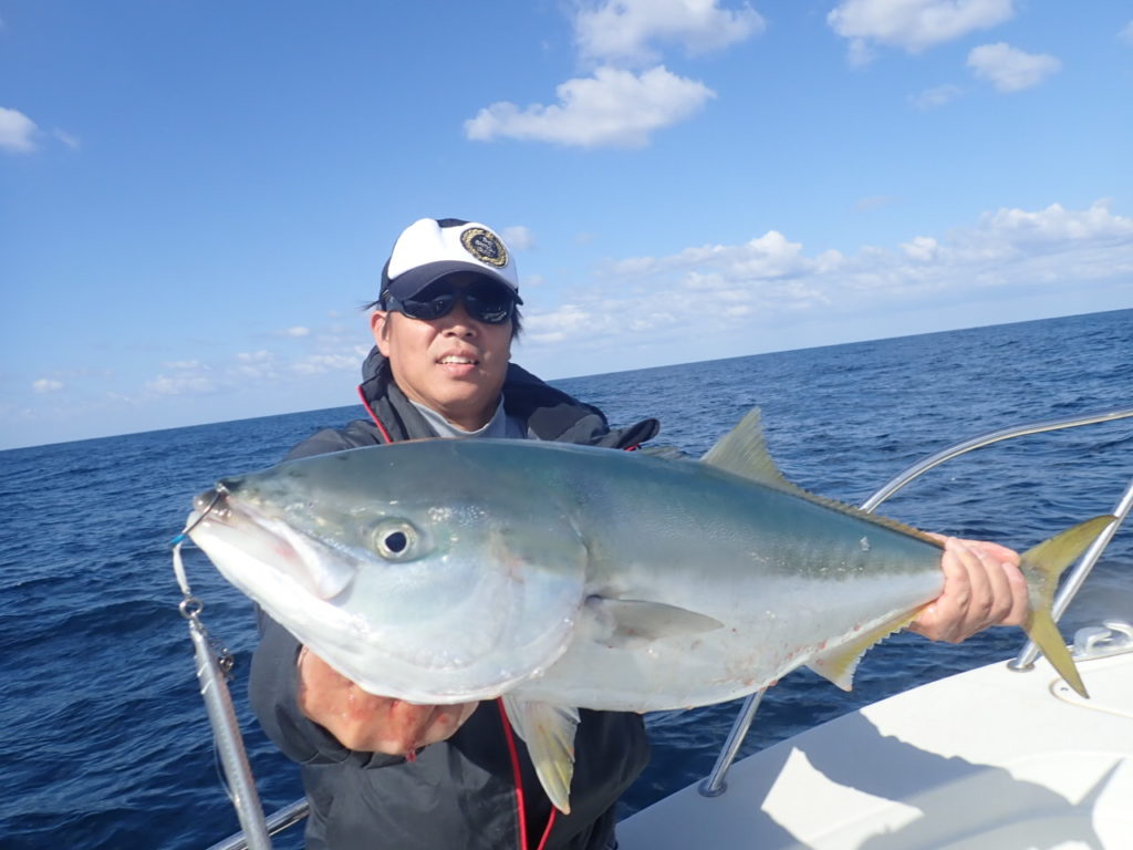 最近・・青いのも100mより深い所で釣れていたのですが・・今日は定番ポイントの瀬周りの浅いポイントでも釣れました・・!!