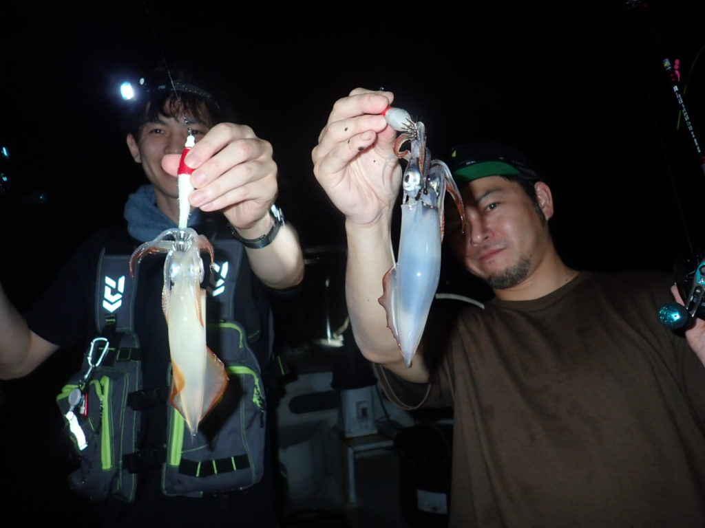 それに比べて・・何度もお越しで・・イカ釣りも毎年やっておられる4名の常連様・・全員二桁は釣られましたが・・青物のビギナーズラックならいざ知らず・・イカ釣りで初めての方や2回目の方に負けたらあかんやろ・・!!