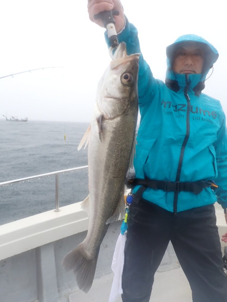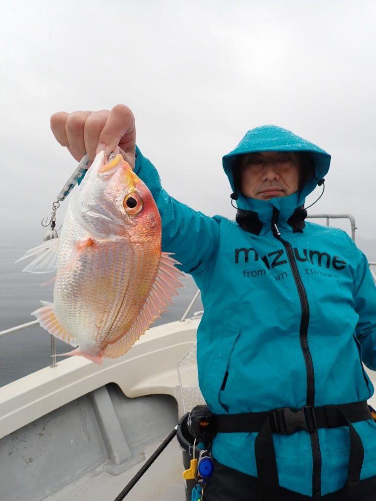 朝一はサワラとシーバス見事ゲットで、昼前からタイと美味しい物シリーズに行ったのですが、若狭湾内はベタ凪でも、沖はそれなりの風があり・・お持ちの250gタングステンでは、底取り2回・・(_ _).。o○