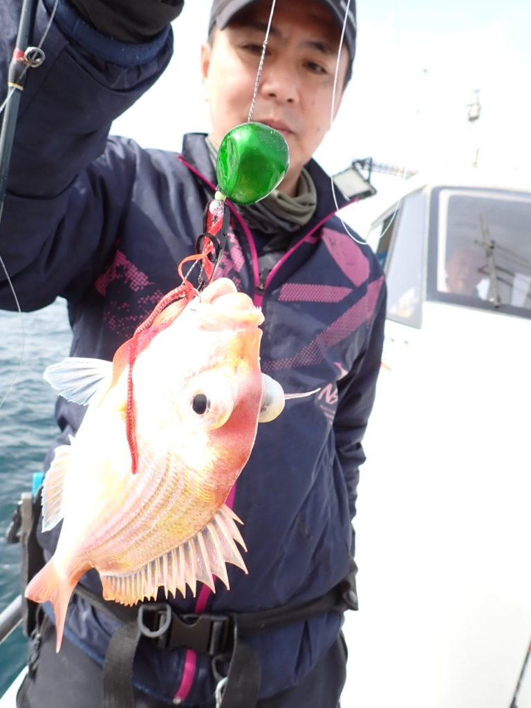 朝一、潮は緩かったのですが、風で船動きポツポツとゲットでしたが、11時位に風が止まり船が動かなくなったタイミングで、美味しい物シリーズへ・・タヌキメバル・沖メバル・ユメカサゴ・ウッカリカサゴ・ニギス・レンコダイなどを確保して・・潮が動き出していることを期待して、もう一度タイラバへ・・期待通り潮動き出し・・短い時間でしたが・・ポンポンと好調にヒット・・結果1位5枚2位4枚、後は皆さん3枚と、全員マルチキャッチでした・・\(^o^)/