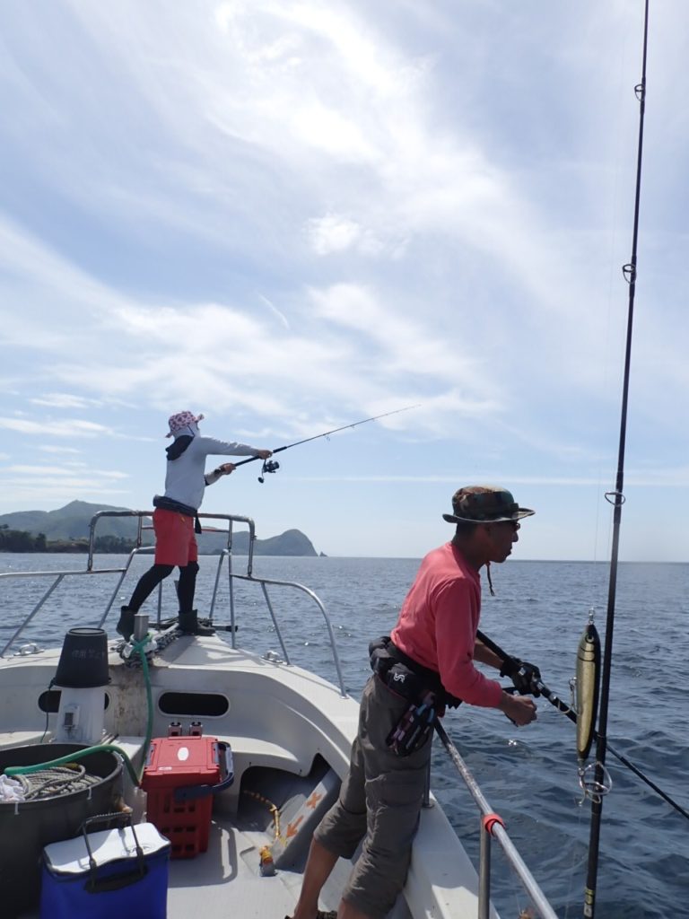 午前中は、風と波が強くドッタンバタンの海で、中々当たりも分かりにくく、波…