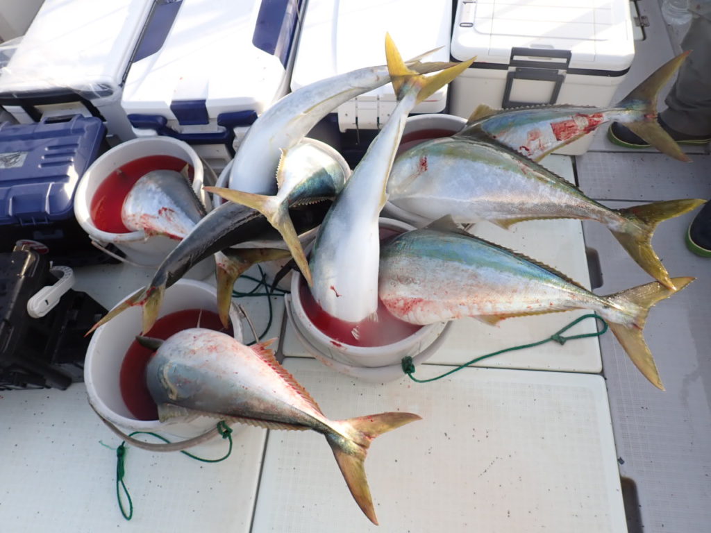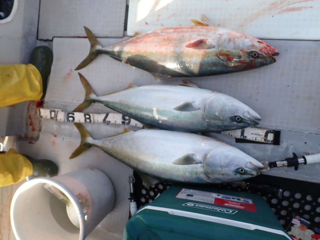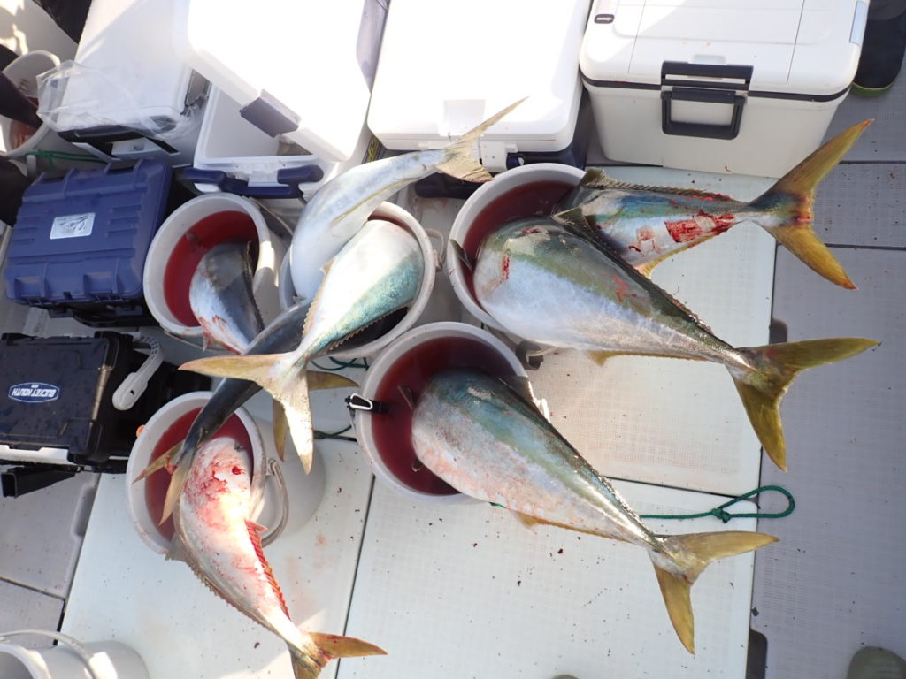 締めのキャスティングは、終盤活性上がり、オールトップで、4名様でブリ9本確保・・まだ出そうでしたが、もう要らないとの事だったので、寄港とさせて頂きました・・\(^o^)/