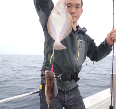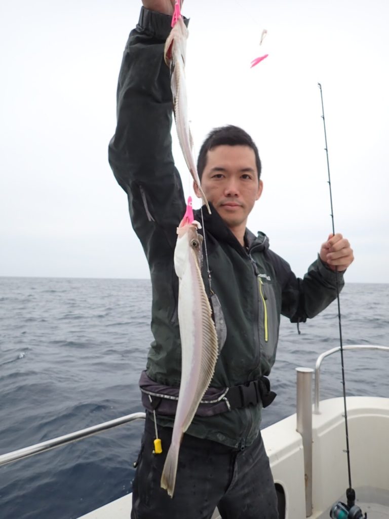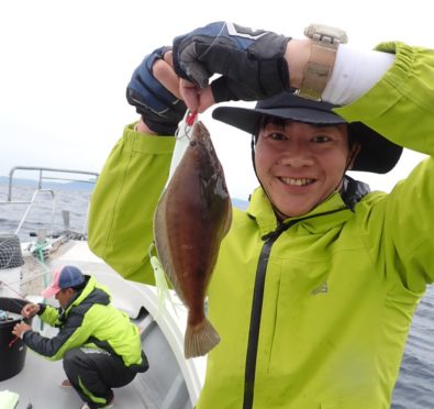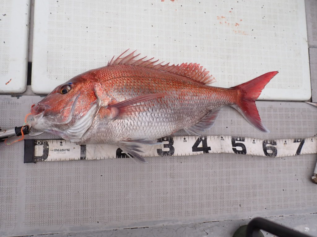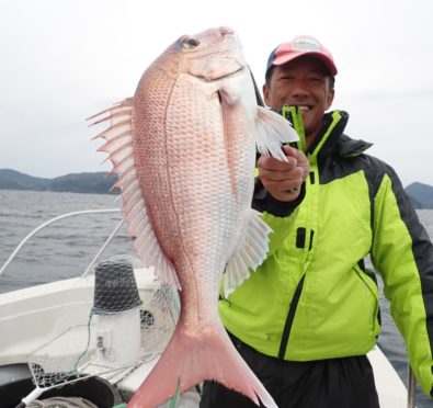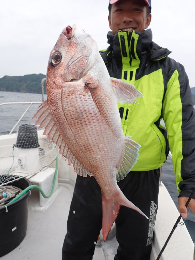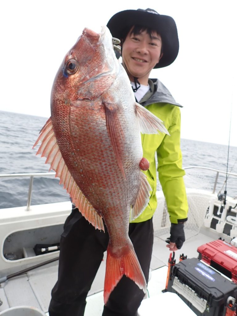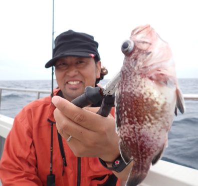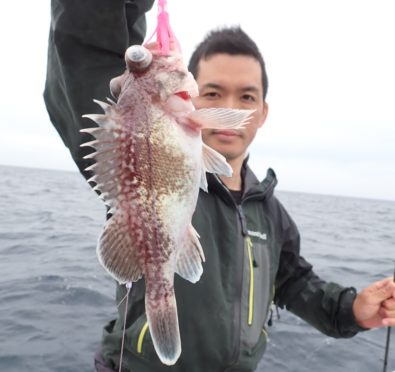 昨日タイラバを持ってこなかったグループでもタイが釣れたポイントで、今日は全員タイラバでやってもらったら良く釣れました・・11時には、同じ魚種ばかり、そんなには要らないようで、次の中深海の美味しい物シリーズに移動・・\(^o^)/