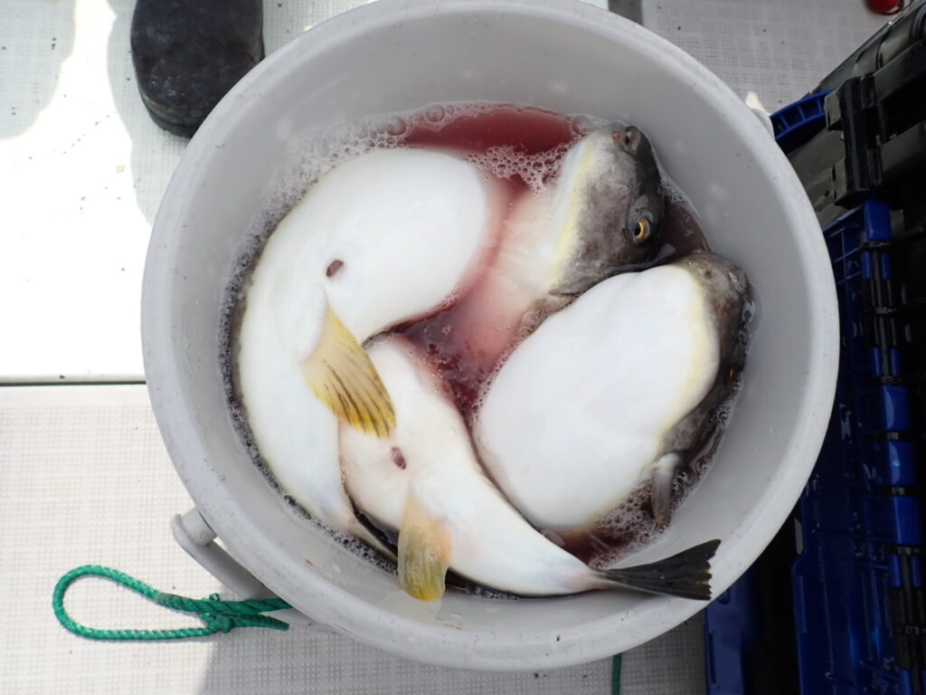 先週、雲子(タラの白子)入りタラもタイも獲ったので、今日はお二人共・・寒ブリを希望・…