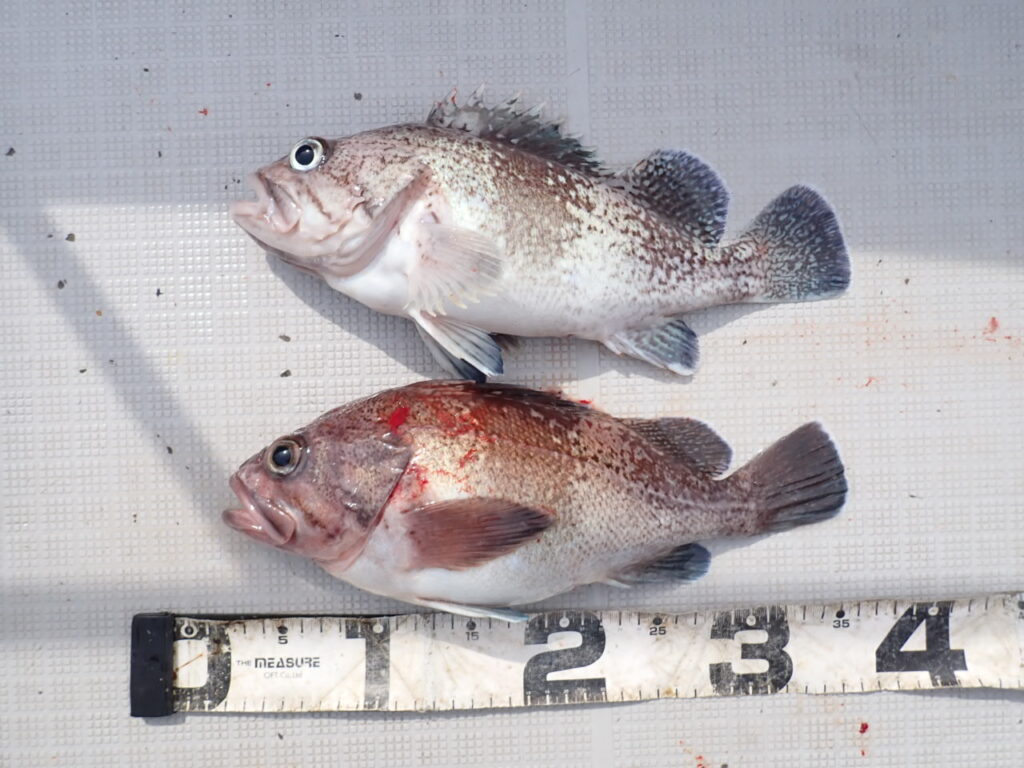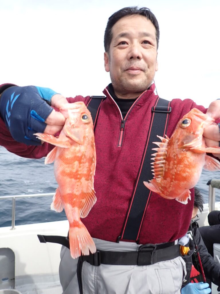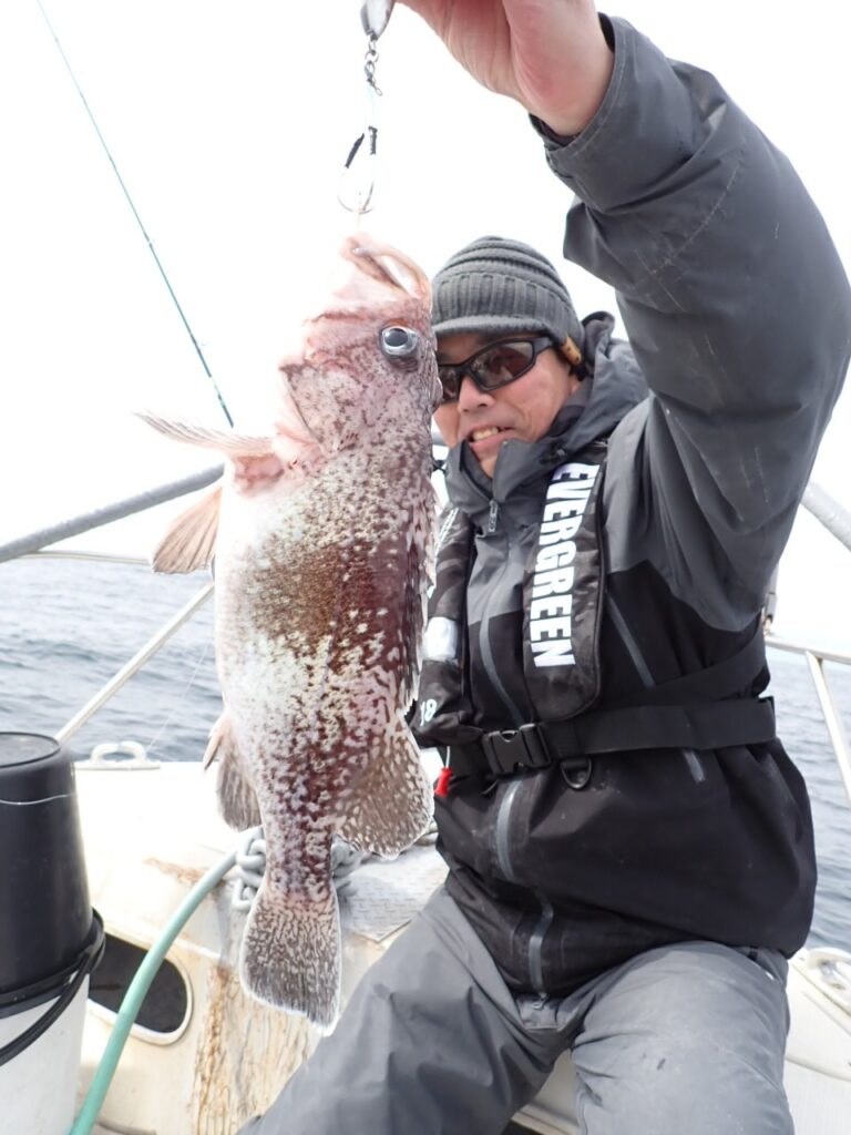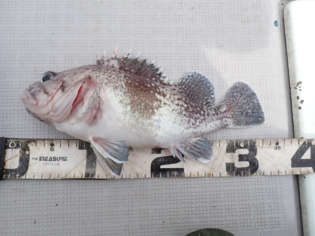 結果として、ブリ6ヒット3キャッチ、タイのナナマル2枚、その他、タヌキメバル・沖メバル・ユメカサゴ・宗八カレイにマフグ山盛りと言う、釣って楽しい、帰ってからも美味しい、家族や友達も喜ぶ、当船らしい釣りに成りました・・\(^o^)/