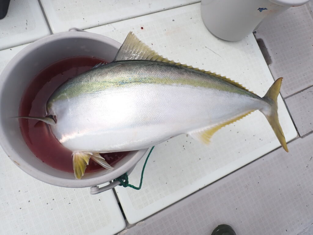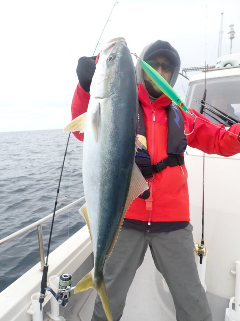 多数決で、先ずは青物から・・一人は飛ばしてシャクっている方、もう一人は、ワンピッチとシャクリ方の違う二人の方には2回ずつヒットしたのですが、他の方はサッパリ・・(⌒-⌒; )