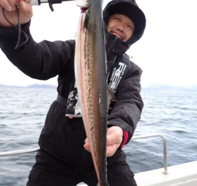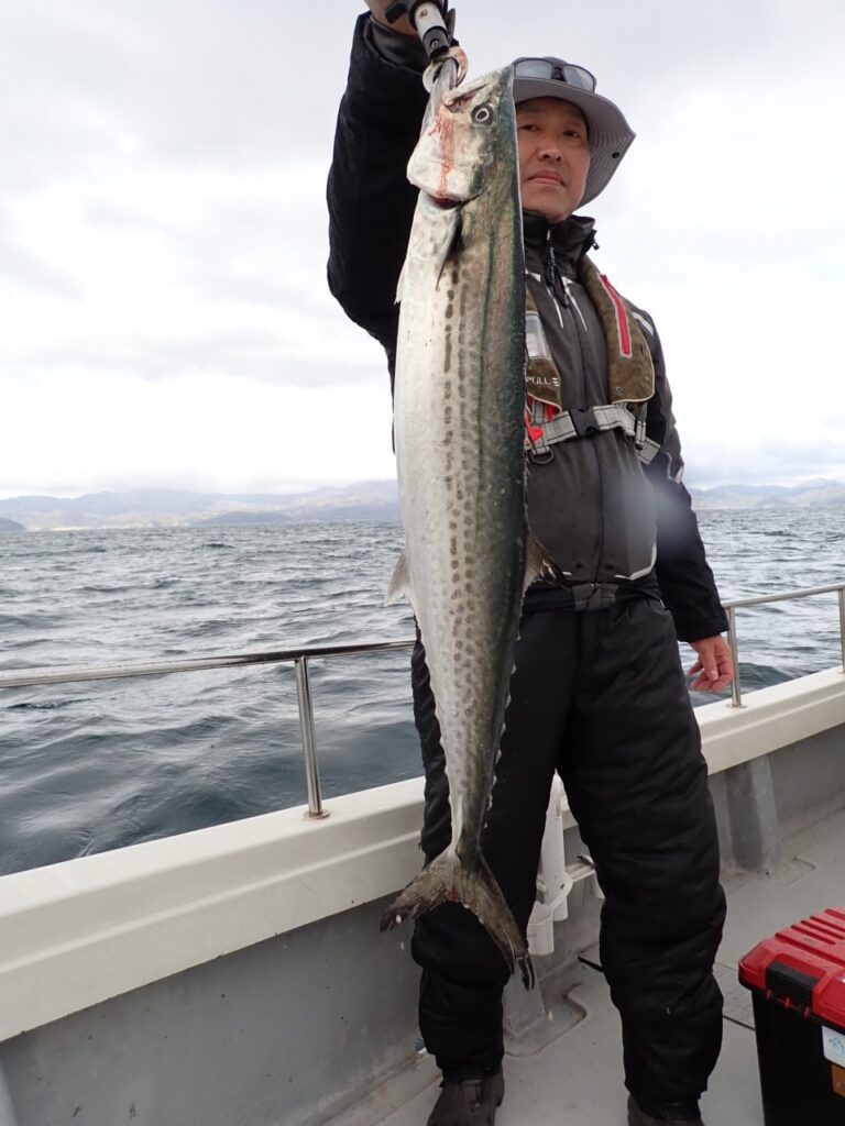 11時頃から沖のポイントにタイと青物を狙いに行くも、反応あっても食わず、大トリ山になるもヒットせずでした・・予報より早く風と波が出だし、船酔いの方も居られたので、サワラを追加して、帰港とさせて頂きました・・お疲れさまでした・・m(_ _)m