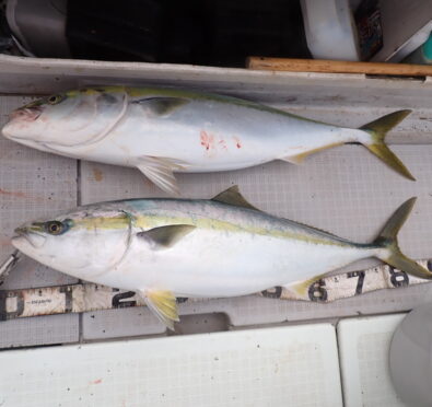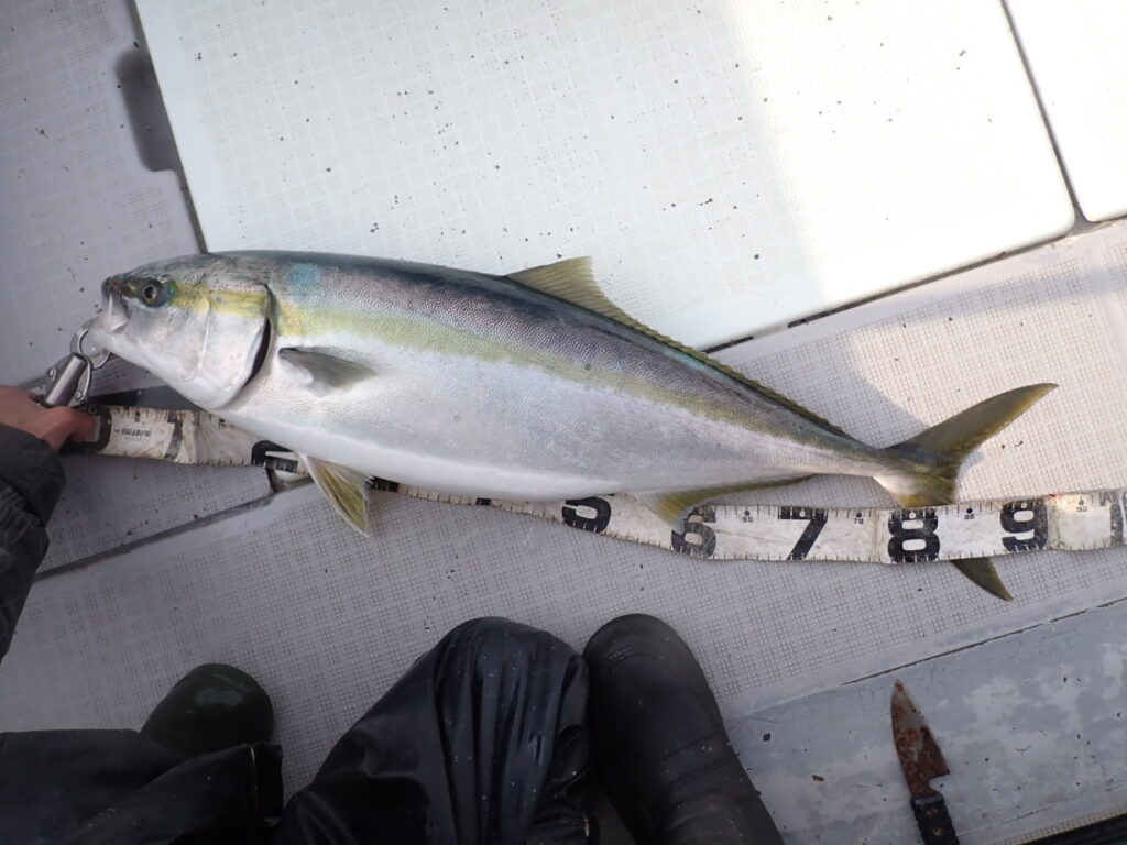 終盤にジアイが来て、底だけやってもらった所、ブリばかりキャッチでした・・このジアイの時も1名は見学、1名は、そのタックルは違うでしょ?と言うタックルだったので、実質2名の釣りでした・・(⌒-⌒; )