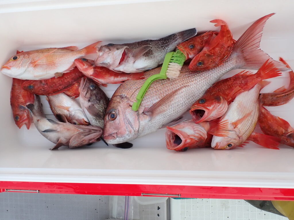 午前中はタイで、コツコツとヒット・・午後からは美味しい物シリーズで、ガシラ・レンコ・沖メバル・タヌキメバル・ユメカサゴ・マフグなど・・\(^o^)/