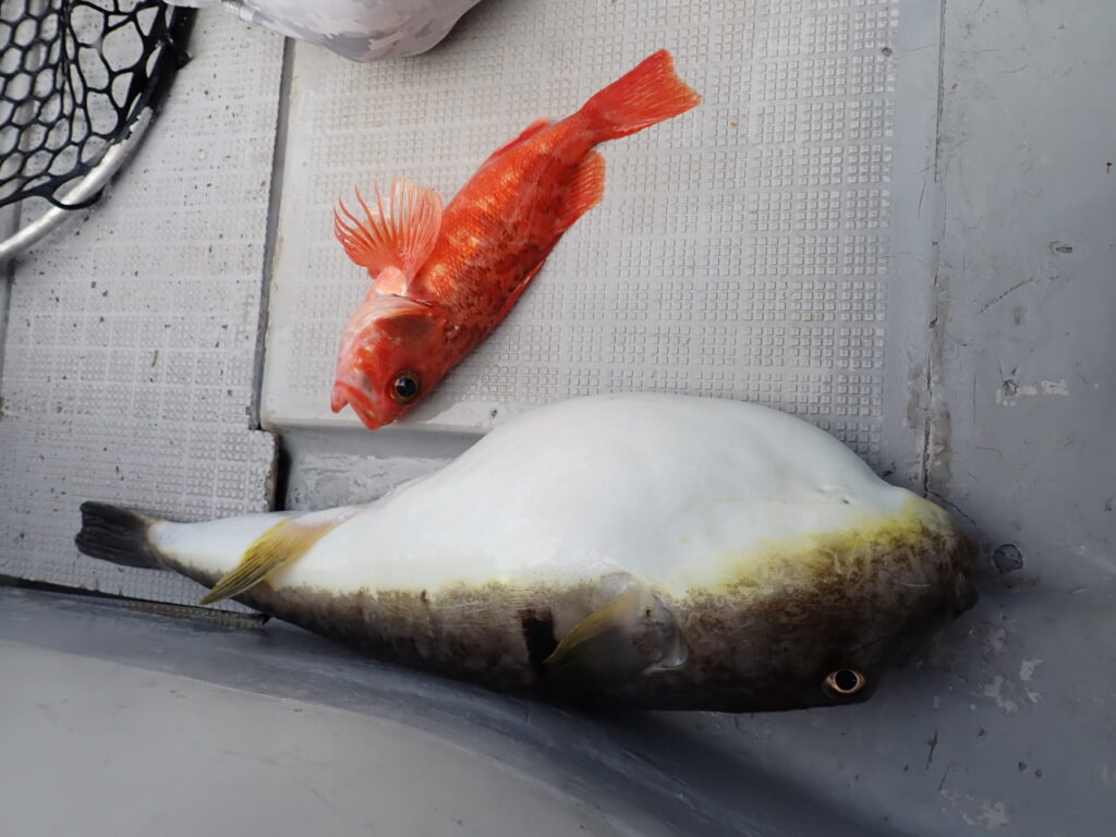 タヌキメバル・ユメカサゴ・沖メバル・スルメイカ・カジカ・ニギスなど、まったく潮のない中、何とか釣ってくださいました・・\(^o^)/