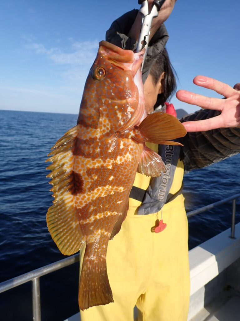 反応は白石礁より薄いのに、最初の反応で喰ってくる・・約1時間程で青物はもう要らないので、最高に美味しいアコウ(キジハタ)を確保して、午後のサワラポイントへ・・(^o^)