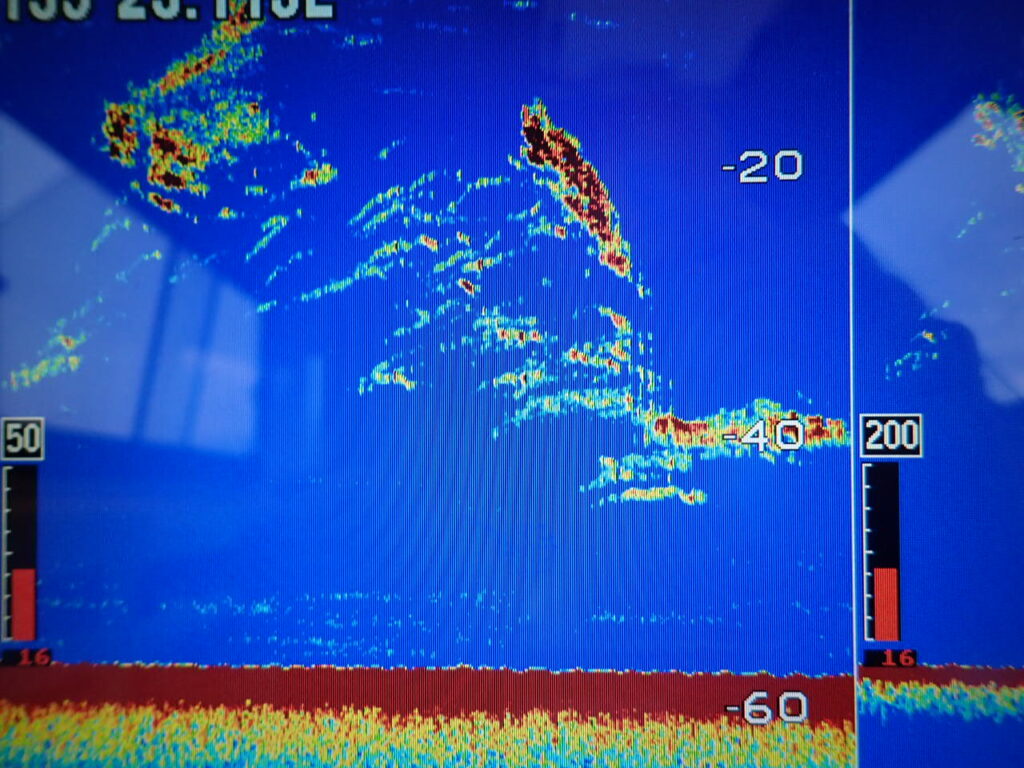 白石礁は何でこんなに反応入るのに釣れないのと言う状態・・西のポイントへ移動・・!!