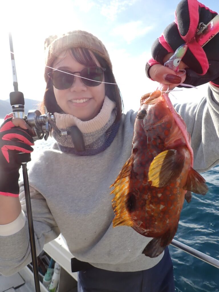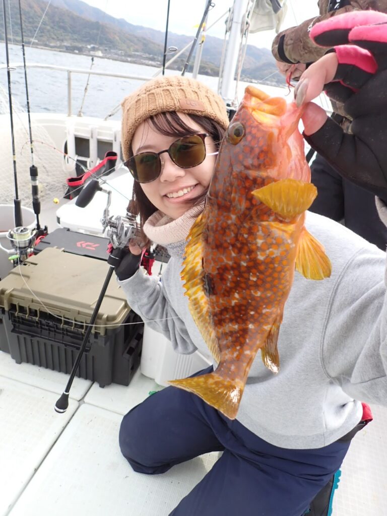 中でも根魚・イカが得意な女子・・アコウ8匹にガシラ2匹と、男子をさしおいて、ダントツでした・・\(^o^)/