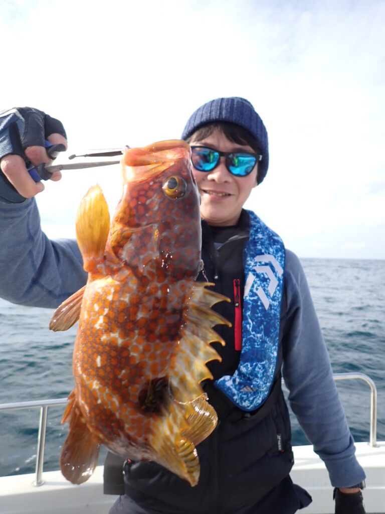 今日の少人数チャーター5名様・・ご希望は、奥さんが、もう青物は食べたくないので、アコウ(キジハタ)を持って帰ってやりたいとのこと・・優しい・・💗