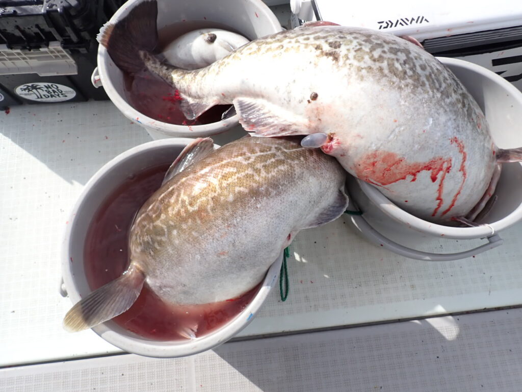 タラは、逆潮でしたが好調にヒット・・それも雲子(タラの白子)・タラコをお漏らしするような、お腹パンパンのGT(ジャイアント・タラ)も混じりました・・\(^o^)/