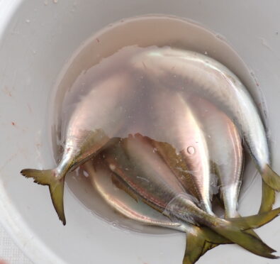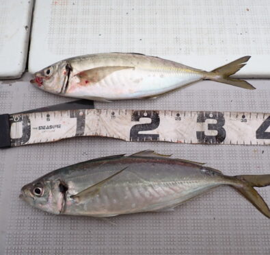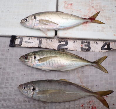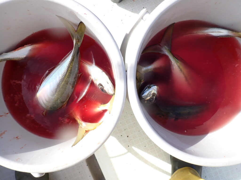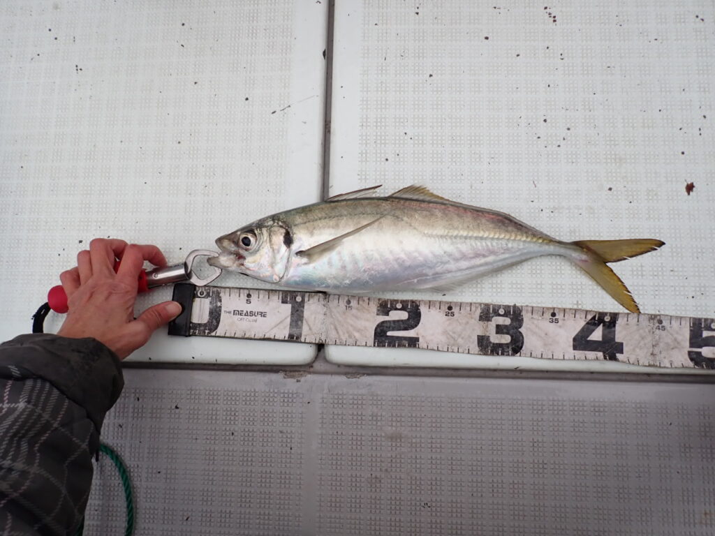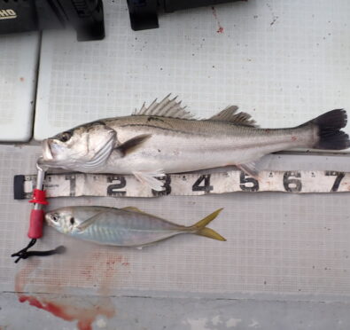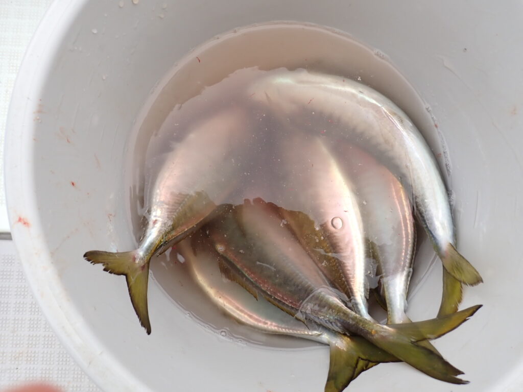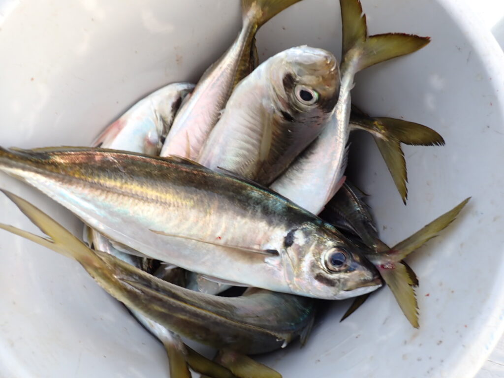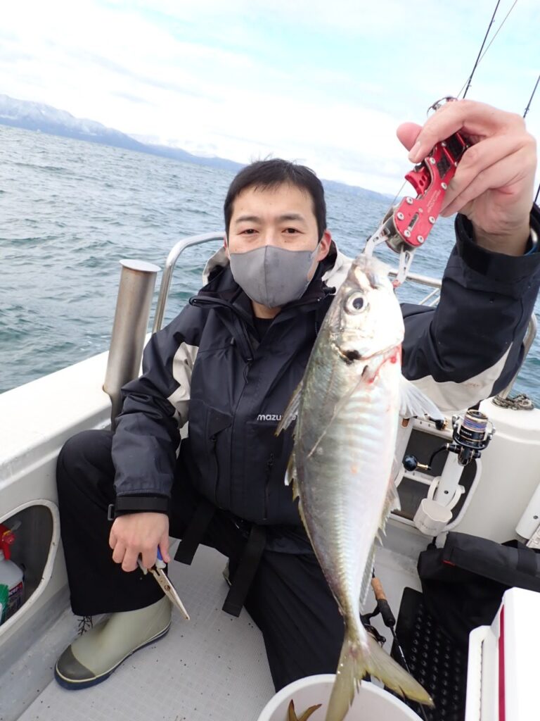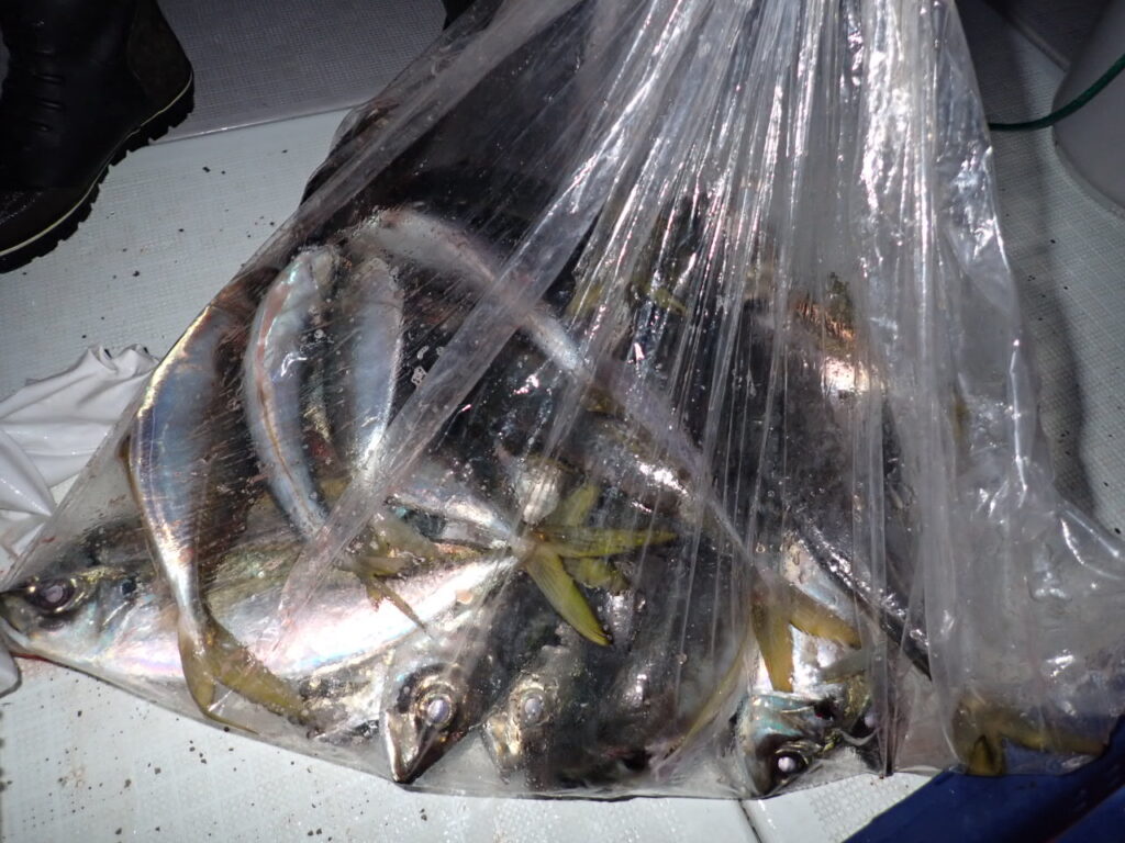 その後、小さなブレードジグにギガアジがヒットしてから、40cm〜50cmのギガアジとトロサバの入れ食い・・お一人20匹〜40匹・・\(^o^)/