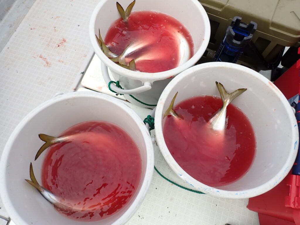 先ずは、サワラから、ラインカットや当たりはありサワラ1匹とシーバスは確保できたのですが・・その後が・・??(/ _ ; )