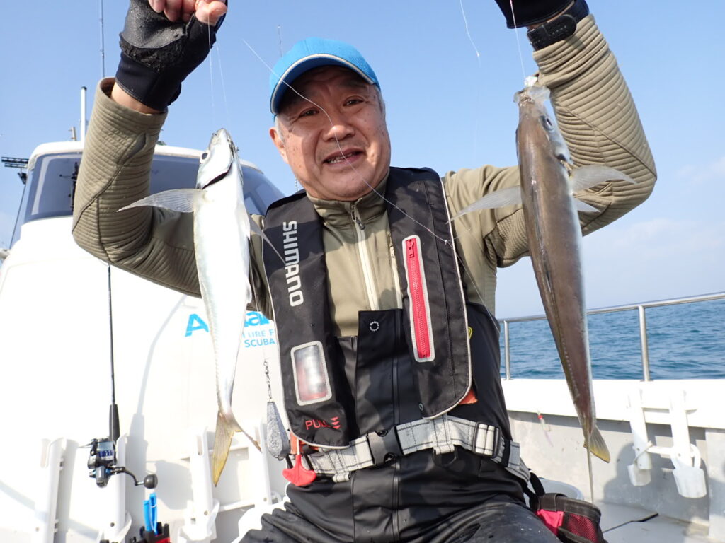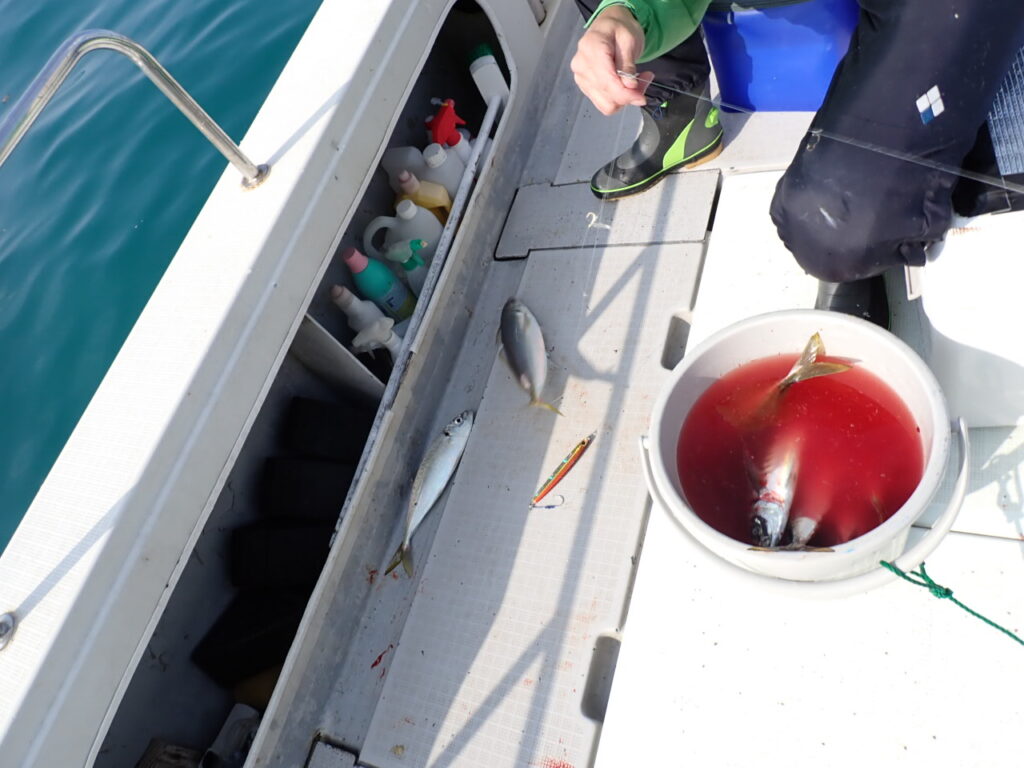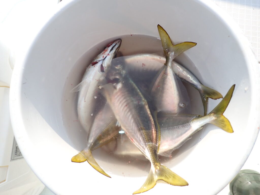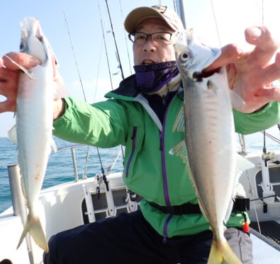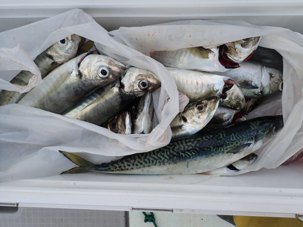 14時くらいには、お一人、ギガアジ35匹前後、大サバ5〜7匹で、もう充分とのことで、早帰りとなりました・・\(^o^)/