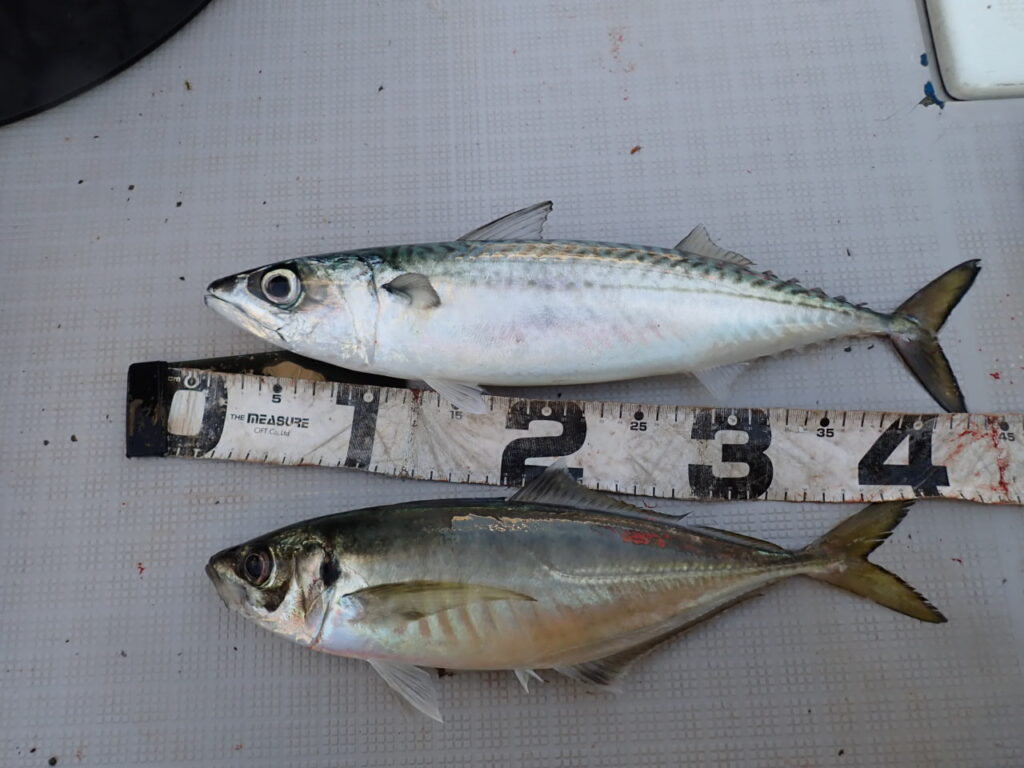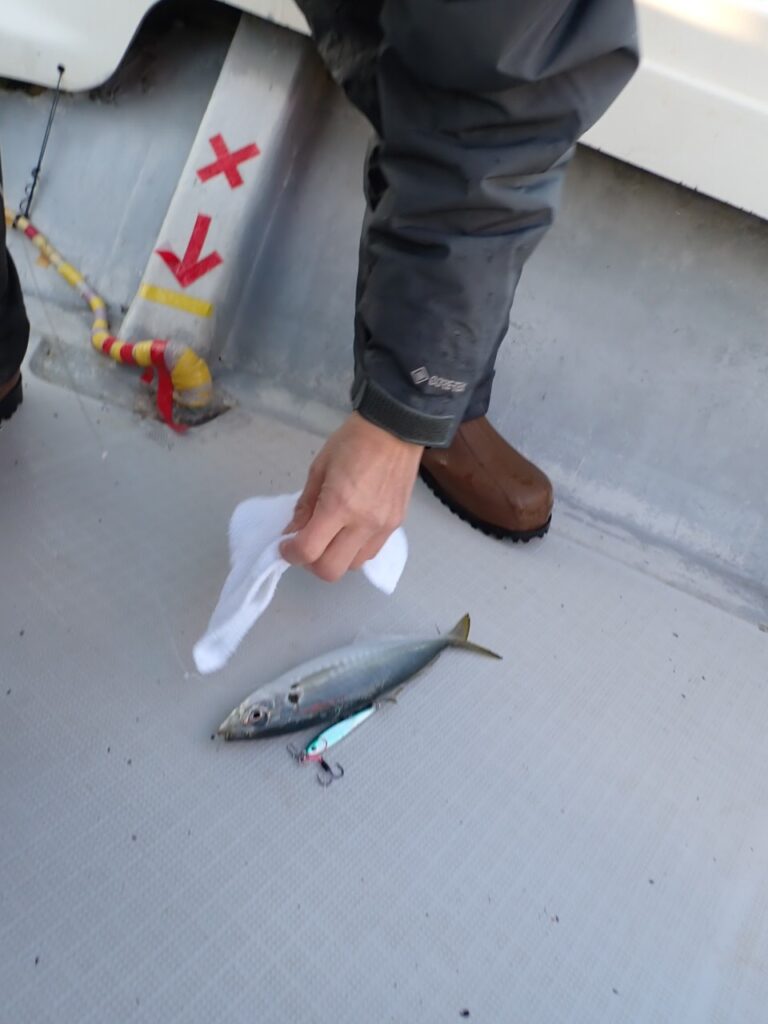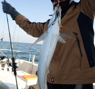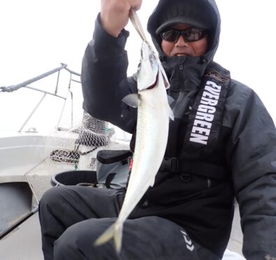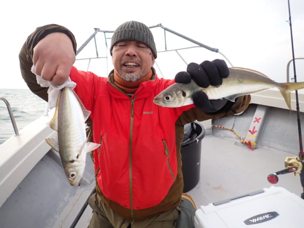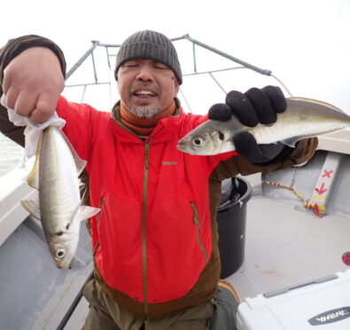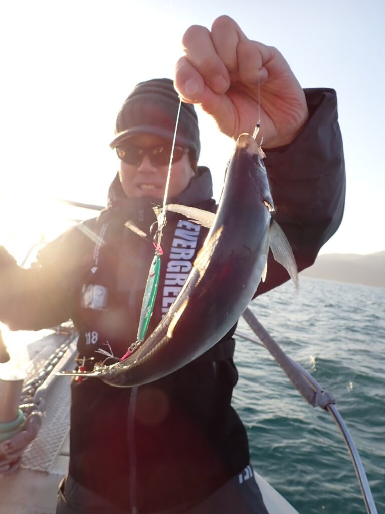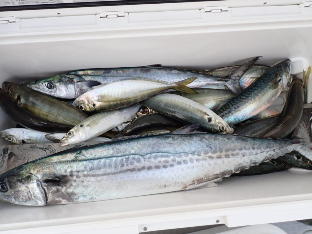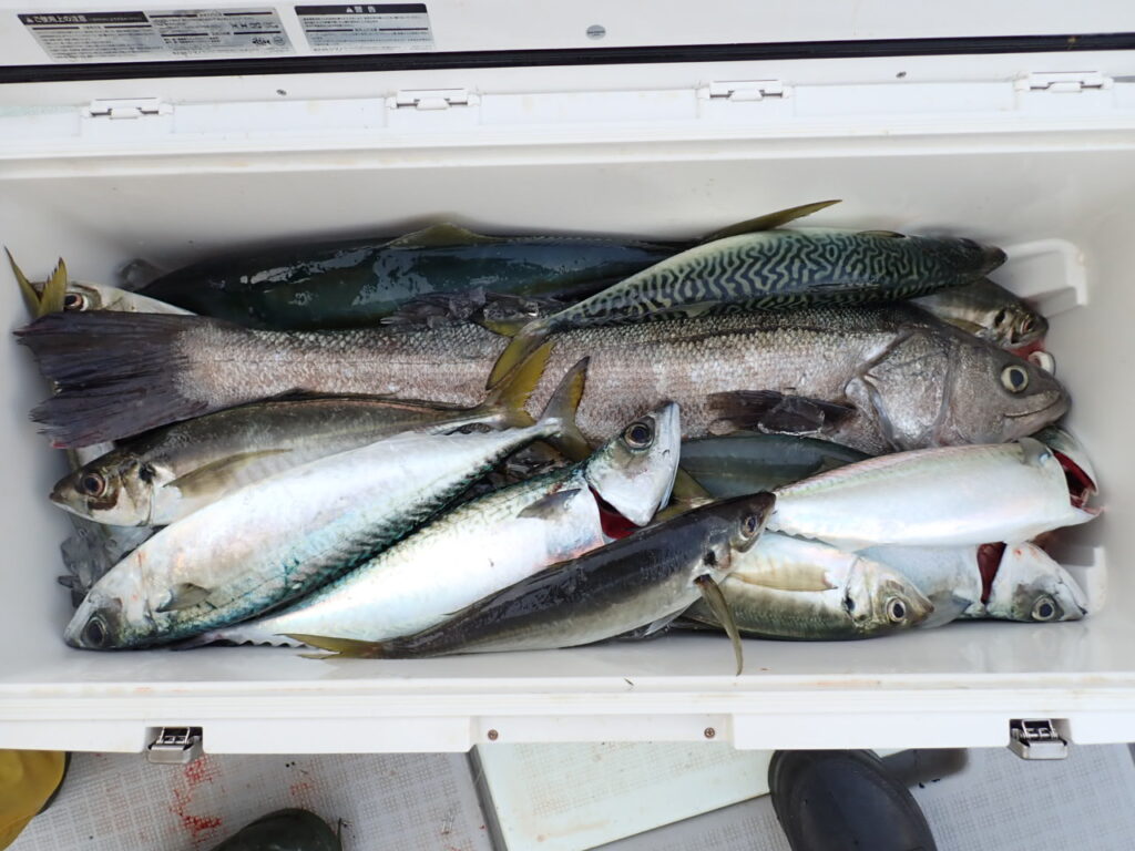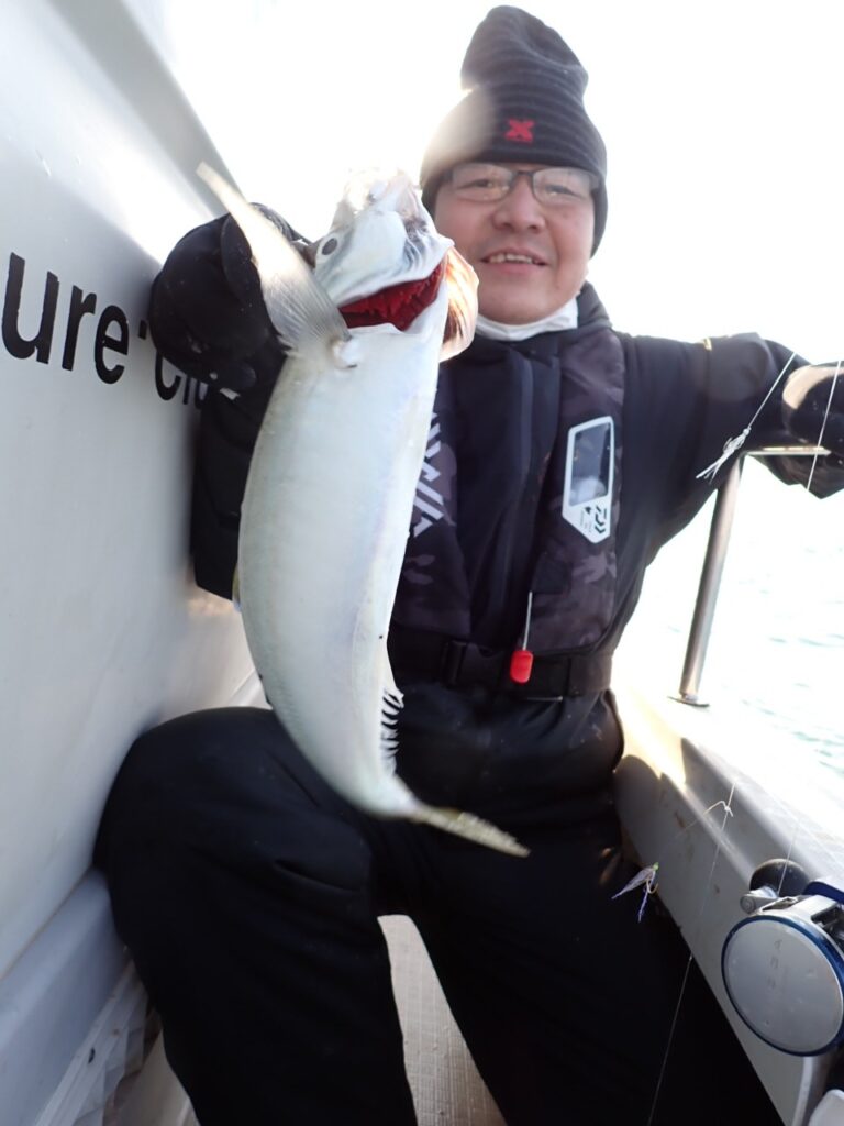 その他、80cmのシーバス・サワラ・サゴシ・ハマチ・ガシラなど、「釣り疲れたので、帰ろ」と、釣れたら釣れたで、何か他の魚種をご希望されるので、当船で早上がりは、中々無いのですが、当船にしては珍しい2日間連続の早上がりでした・・\(^o^)/