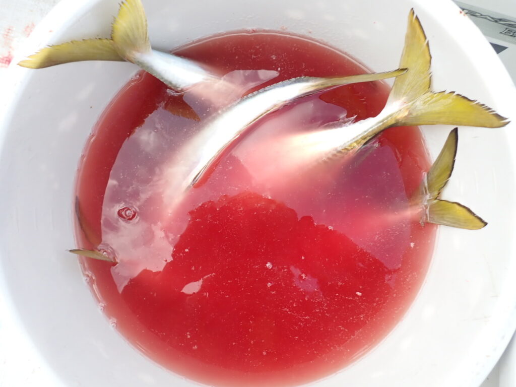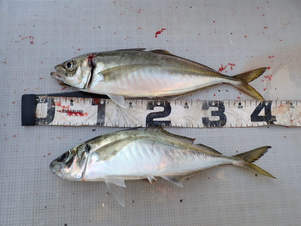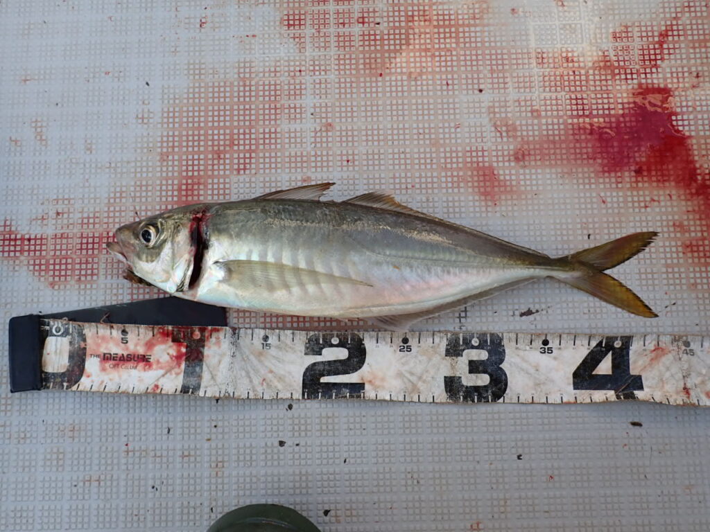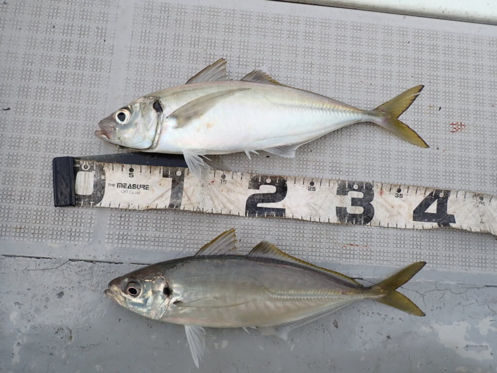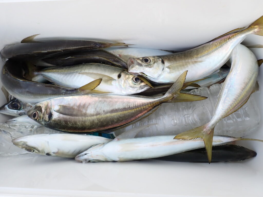 結果、ラン&ガンで、途中フェイントも入れながら、ギガアジや大サバ爆釣・・お一人ギガアジ20〜30匹、大サバ5〜10匹でした・・\(^o^)/