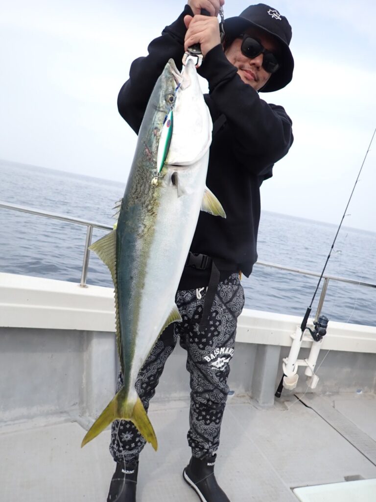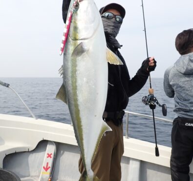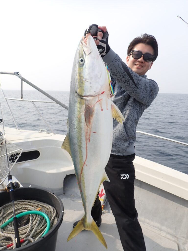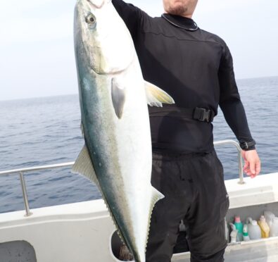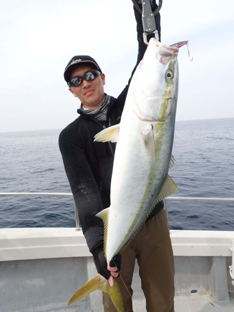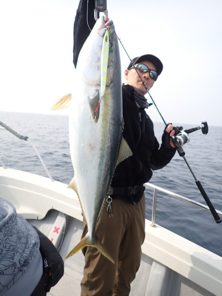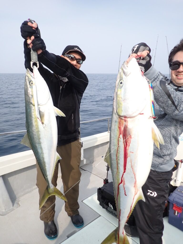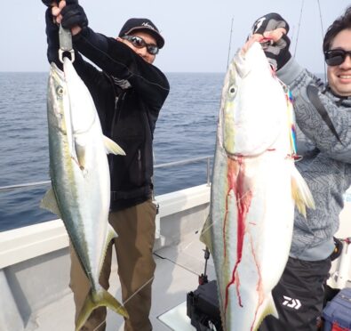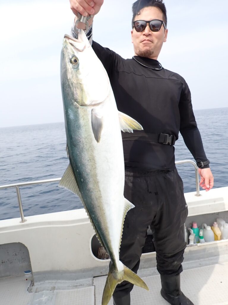 朝から大物ポイントは雰囲気がなく、昨日アラ・大型タヌキメバル・ユメカサゴ・沖メバルなど美味しい物シリーズが好調に釣れたポイントが、タヌキメバル2匹とユメカサゴ1匹とマフグ多数と、イマイチだったので、午後からポイントと狙いをブリに大きく変えて、再チャレンジ・・此処からが好調にブリがヒットして、初心者3名も全員2本のマルチキャッチ、ベテランさんは3本と、10kg前後のメタボなブリが揚がりました・・\(^o^)/