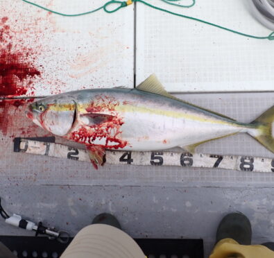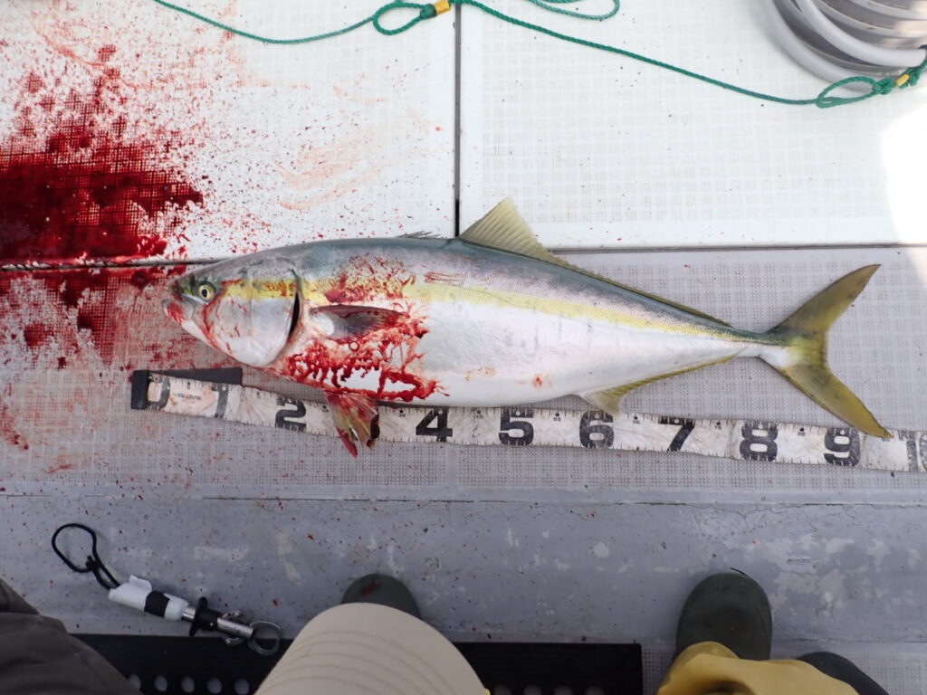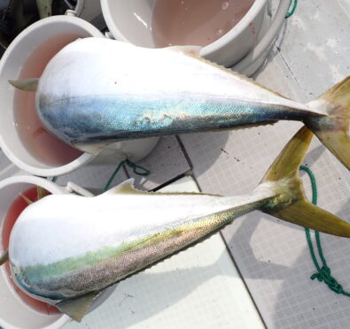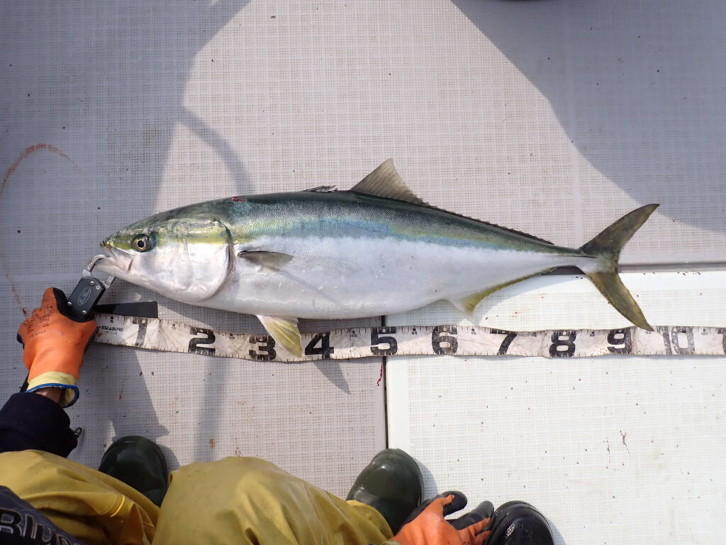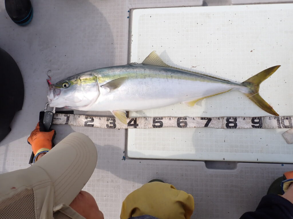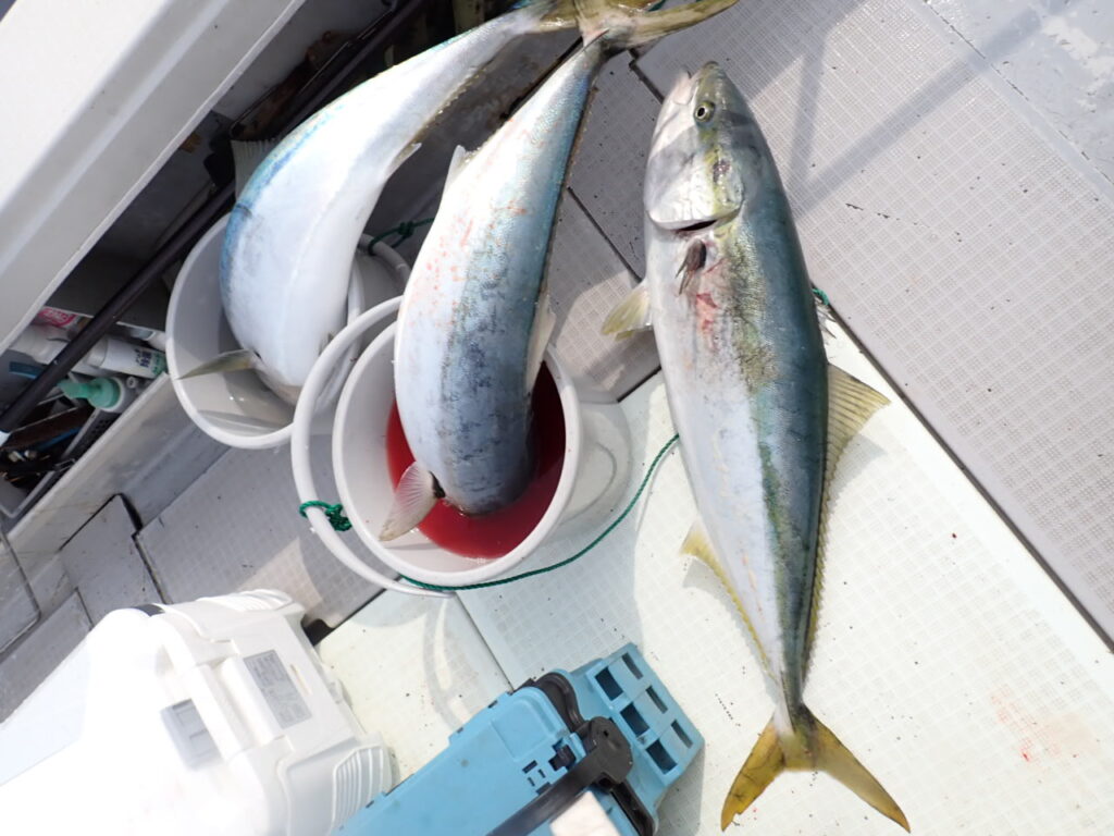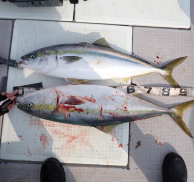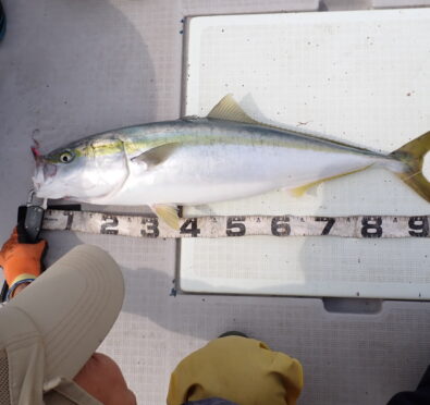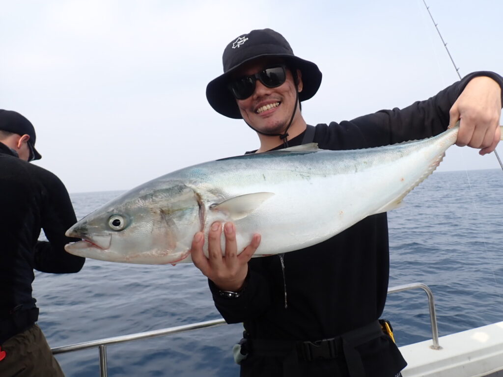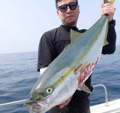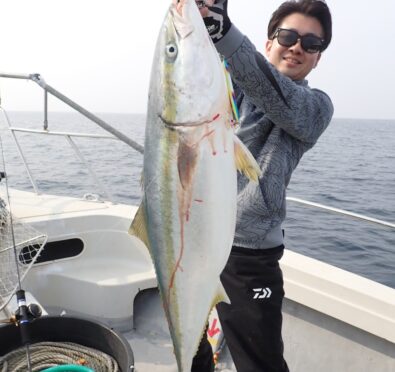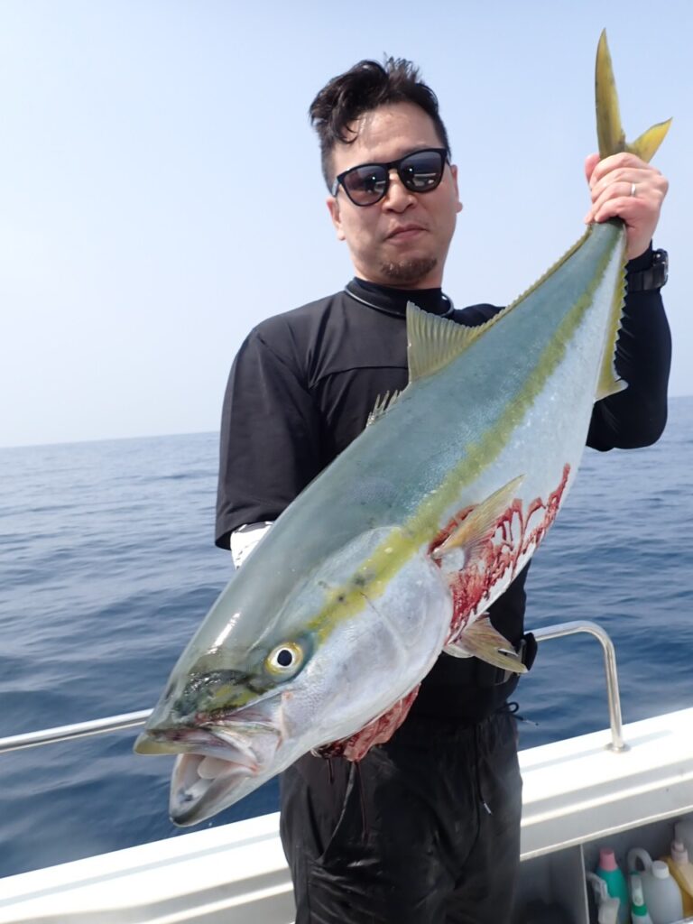 朝から大物ポイントは雰囲気がなく、昨日アラ・大型タヌキメバル・ユメカサゴ・沖メバルなど美味しい物シリーズが好調に釣れたポイントが、タヌキメバル2匹とユメカサゴ1匹とマフグ多数と、イマイチだったので、午後からポイントと狙いをブリに大きく変えて、再チャレンジ・・此処からが好調にブリがヒットして、初心者3名も全員2本のマルチキャッチ、ベテランさんは3本と、10kg前後のメタボなブリが揚がりました・・\(^o^)/