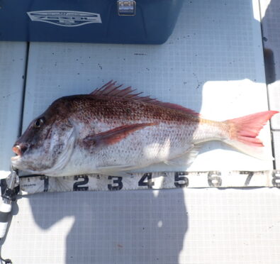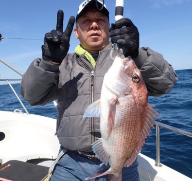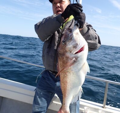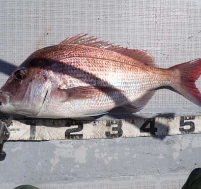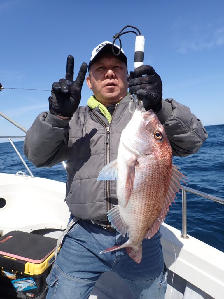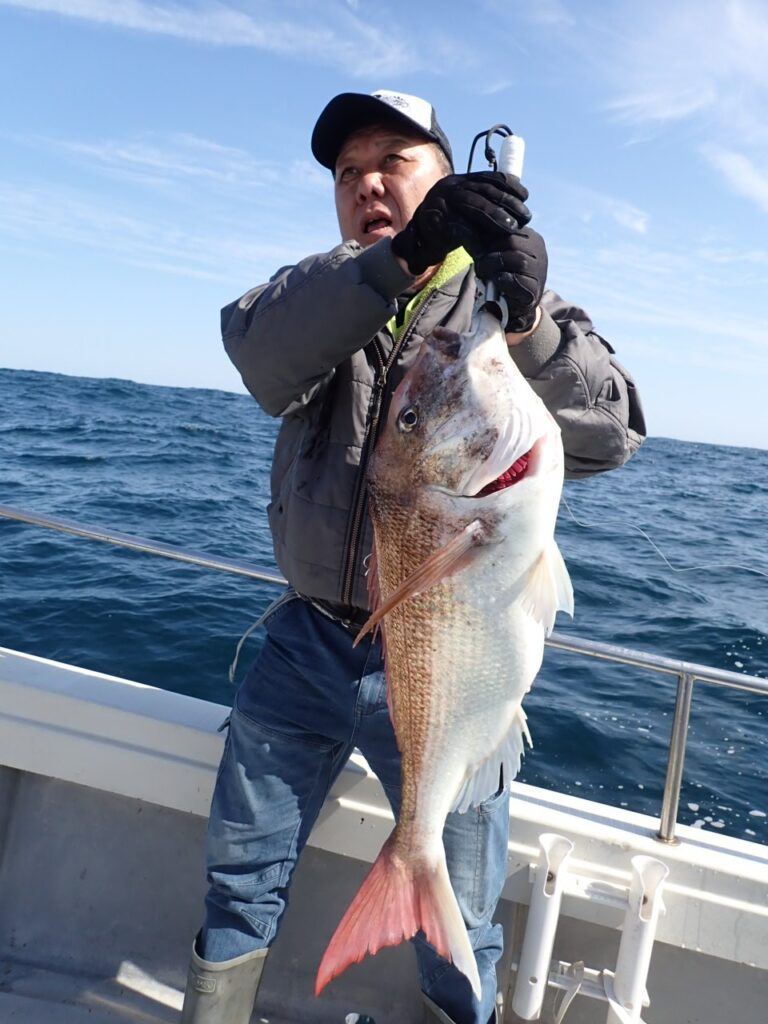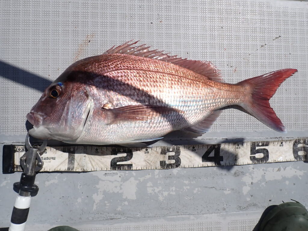 今日は朝一から、マダイのハチマルからスタート、もう1匹食べ頃サイズを追加・・\(^o^)/